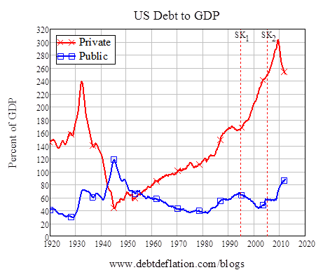 Krugman’s final answer to Keen is revealing. He resorts to wilful mischaracterisation of Keen’s point of view, pretending that Keen doesn’t understand basic new Keynesian views about sticky prices and wage rigidities. It’s a dishonest and dismissive tactic which shows Krugman’s unwillingness to challenge his own basic conceptions, not to mention the extent to which he is wedded to an outdated version of economics. Can’t he actually engage with his opponent’s view, rather than attacking a caricature of it?