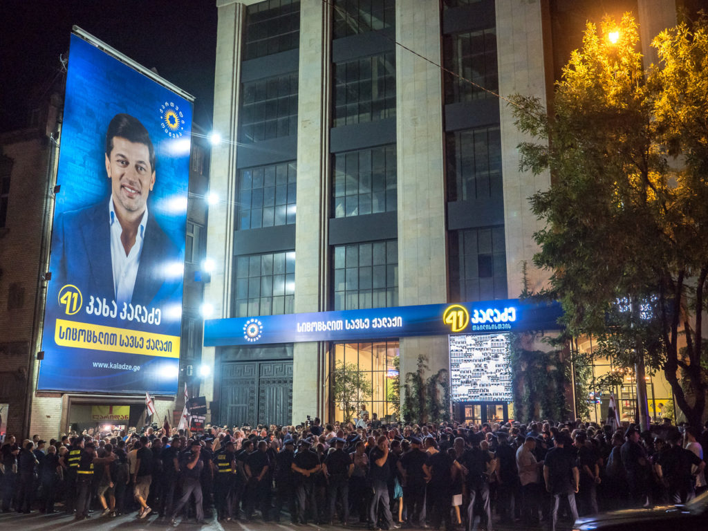 Tbilisi is a perfect microcosm in which to demonstrate that if you have enough money you can get power, once you’ve attained power you just have to keep things steady and engage in distraction politics: Kaladze is talking about the importance of Georgian language adverts and signage in an area where lots of Iranian and Arab tourists visit and miraculously the day before his campaign launch, a demonstration of alt-right style fascists chanting “Georgia for Georgians” arrived to protest outside his campaign headquarters in the yet-to-be-opened Intercontinental Hotel where he has set up a “transparent office”, open to the public. Once they have a majority, political leaders can carry out their backer’s financial interests, no building permit is out of reach.