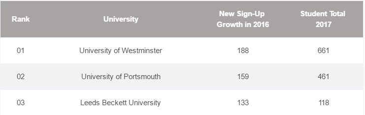 In the UK, the University of Westminster tops the list.