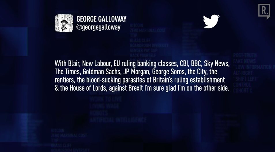 “As we can see from the Leave campaign in particular, they were the worst. They led the country in a particular direction, and then the moment that they won, they just abandoned the stage. Oh great. Now we’ll have Brexit. Haven’t told you what that means. Haven’t laid out a vision for society to move forward. And we’re not going to be in charge of implementing it. We’re just going to you know retire, or leave government, or stab each other in the back so you can’t actually get into government. Just remarkable dissolution of what used to be, particularly with the Tory Party, the traditional, establishment, ruling class, solid - totally fragmented.